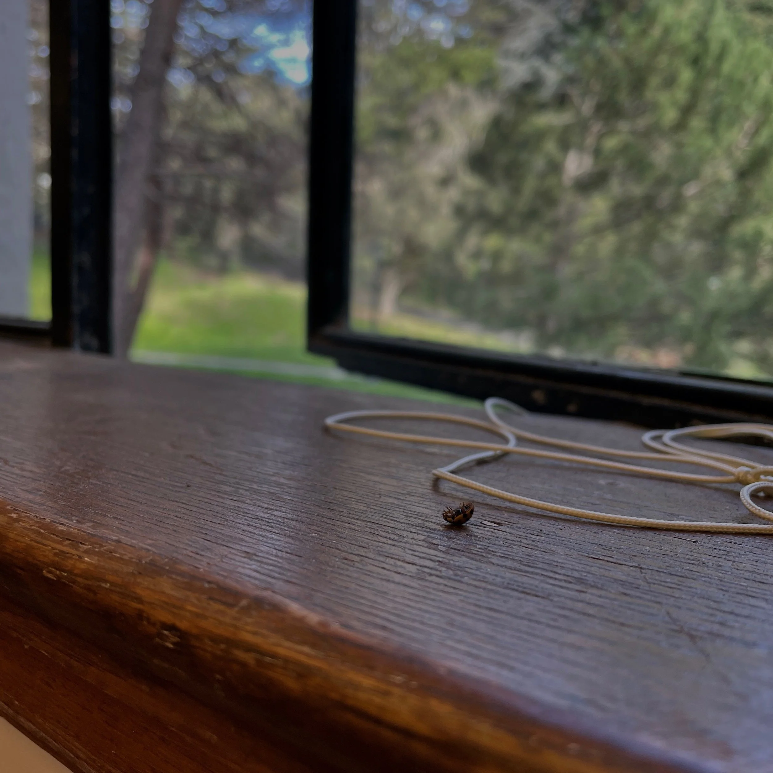 Spring is unfolding ever so softly, a subtle simmer peaking out from budding branches and dusty asphalt. It’s a lovely thing to observe creation and the tiny deaths that growth entails. What trees wished its wood a windowsill future, holding it all up to gaze upon or gaze out. As the sun sifts through, the shadowed stages are seen clearly and the little lights that lift up to delve back down are reworked again and again. Trying to make ripples, hoping the stamps will outlast the season. That the paint will resist the coming showers. And as I wonder how long sheared skin can stay, or how thick lead can run, the perfect hope of permanence brings me back to the little lady who will never be bugged again and all the passings of today that trickle on by